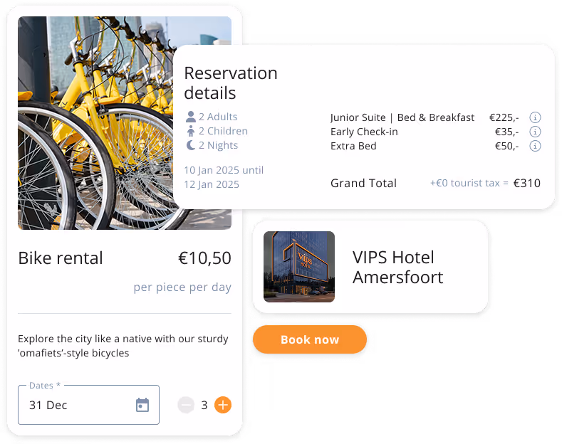 Make communicating with your guests easier and more personal in one go, from booking confirmations to in-stay upsells. Fully customizable to your hotel's brand!