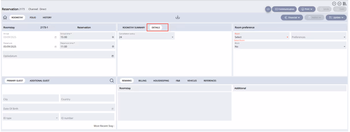 We’ve made an adjustment in the roomstay screen. We added a new tab next to the Roomstay Summary section called Details and a new field Cancellation Policy is added.