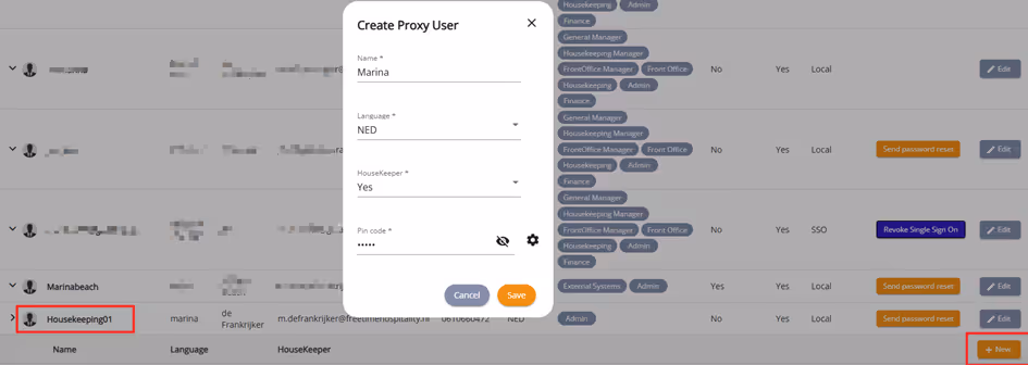 In preparation of our new VIPS PMS App, we have created the possibility to create Proxy Users. This will allow you to create a user in a user so that under the same main user, multiple other users can be logged into the app. This can for example be used for a housekeeping login where the housekeepers all work under the same main login but with their own Proxy User.